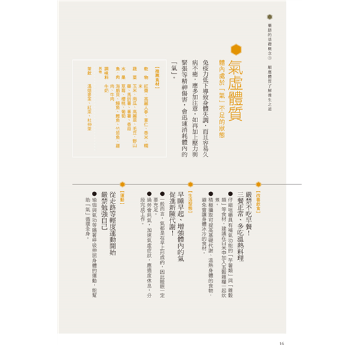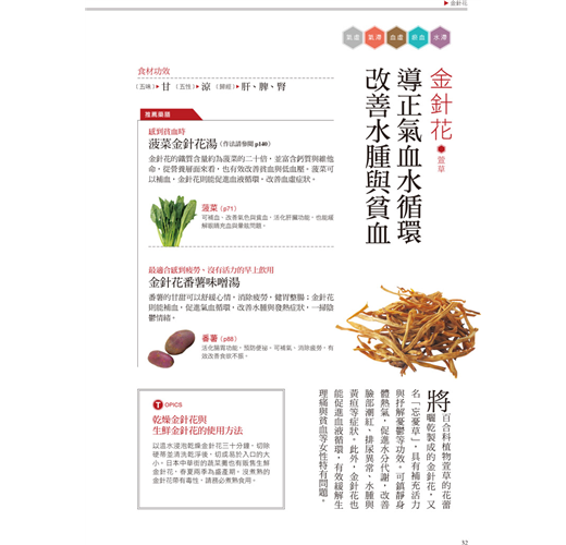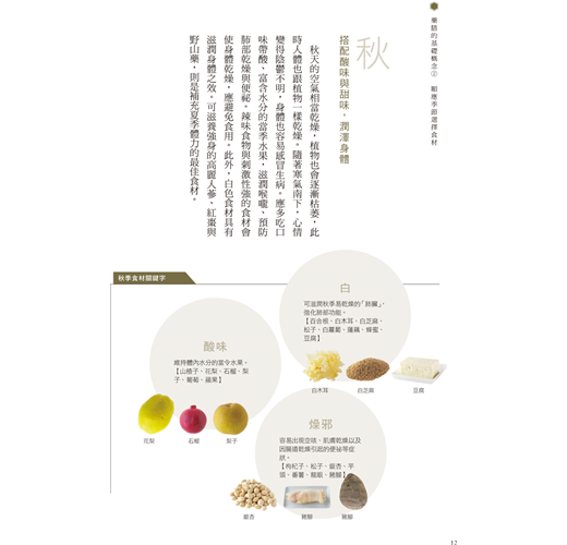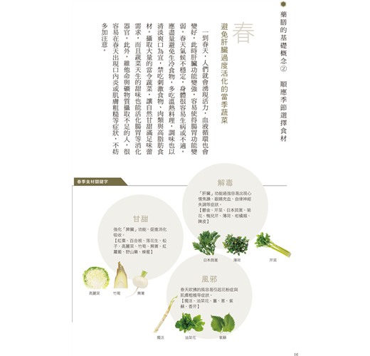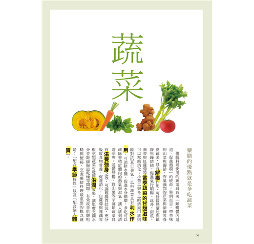 ●檢索方便!以圖解方式標明每項食材適合的體質,全書最後依症狀別條列有助改善的食材,方便讀者查詢。