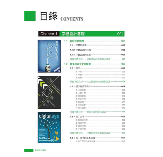 •全書共分6章節,由淺入深地介紹字體設計基礎、設計原則、排列組合、設計方法與商業應用,並以字體設計在出版品與商業設計的應用做輔助,使讀者除了學習時容易上手外,同時也能吸取優秀作品的設計思維,啟發設計思路,快速掌握設計方法。