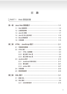 全書分4部分共17章,內容包括 Java Web 開發簡介,HTML、JavaScript 簡介,XML 簡介,Tomcat 伺服器的安裝及配置,JSP 基礎語法,JSP 內置物件,JavaBean,檔案上傳,Servlet 程式開發,運算式語言,Tomcat 資料源,JSP 標籤編程,JSP 標準標籤庫(JSTL),Ajax 開發技術,Struts 基礎開發,Struts 常用標籤庫,Struts 高級開發。