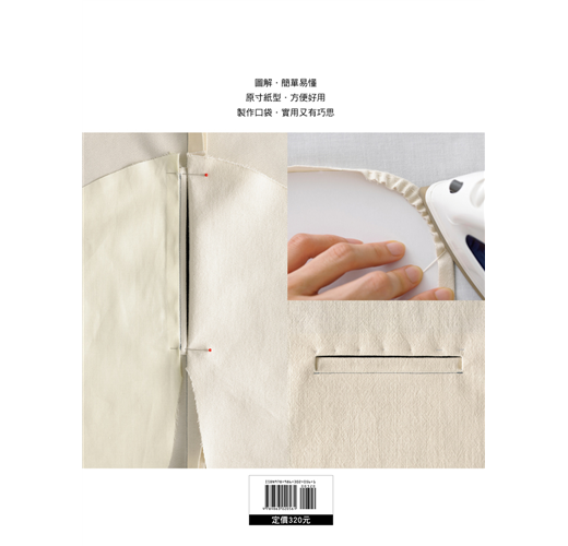 其實製作口袋並沒有想像中困難,隨書附上口袋們的原寸紙型,跟著書中的圖示步驟一起進行吧!製作步驟全以實際照片呈現,操作時更容易理解。只要多花點心思,就能讓手作服擁有自己的味道喔!