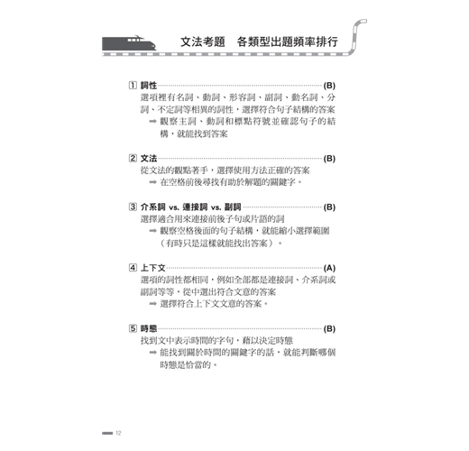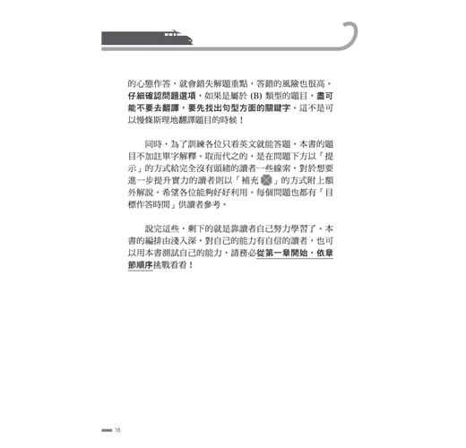 這本書能讓忙碌的各位如同搭上高鐵一般,在學習英語的路上迅速而平穩地到達目的地。而且,本書的尺寸精巧,適合在搭車的時候閱讀,每經過一站,解題能力就會更進一步。
