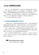 臨時寫的英文E-mail總是讓你和外國客戶之間雞同鴨講嗎?英文作文與報告花三天三夜時間寫,結果外國教授還是看得一頭霧水嗎?《Google英語學習法》教你靈活操作Google的翻譯功能,把想表達的中文,用一點小密技翻成英文,再用搜尋功能檢查正確性,還可以搜尋其他參考網站來當書寫架構與修飾文字。臨時趕的100封E-mail都能讓客戶滿意;早上才剛寫好英文自傳,中午就接到面試。