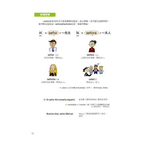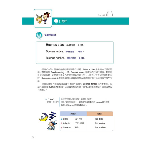 擷取學習要點,不時以簡明扼要的表格、插圖協助理解西班牙語的文法。不論是西語中令人難懂的特殊人稱六變位、或是陰陽性等等等的文法,都能一目了然。