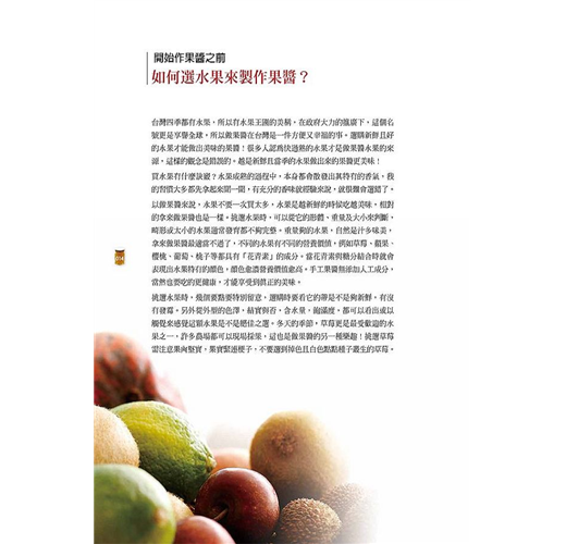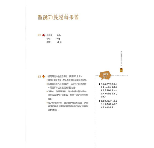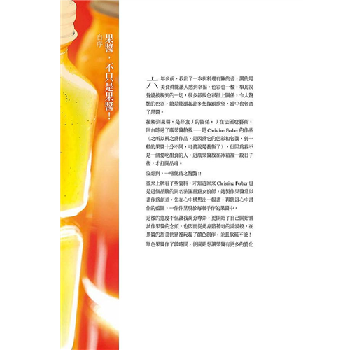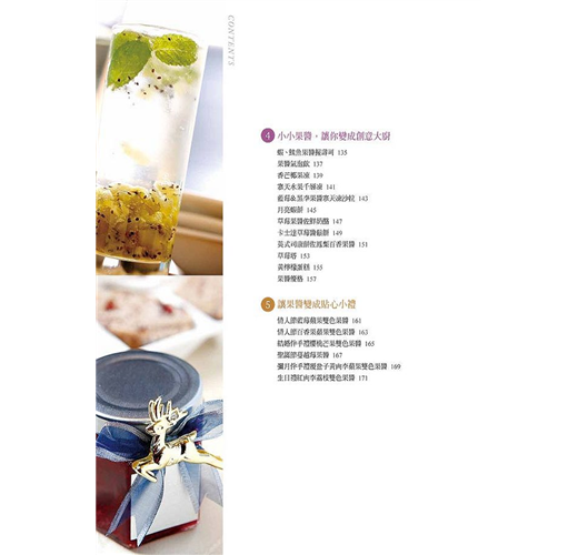 本書還提供了果醬多樣化的搭配吃法,讓你成為創意大廚。另外,在不同的節日,為親手做的果醬,穿上極具心意的包裝,就成為最特別的禮物!