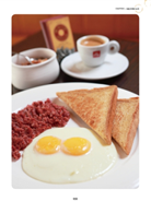 侍者送上一份豐盛大的早午餐,鮮嫩火腿、培根、班尼迪克蛋、拖鞋麵包,還有爽口的生菜沙拉與咖啡香,一邊閱讀書報,一邊分享生活心得,優雅從容地享受著美好的用餐時光,多麼美妙。