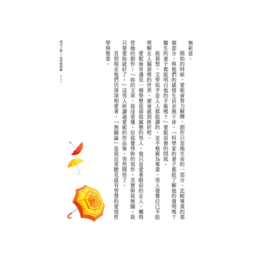 直到現在他們仍深深相愛著,「無關論」是我近來聽見最有智慧的愛情哲學與態度。