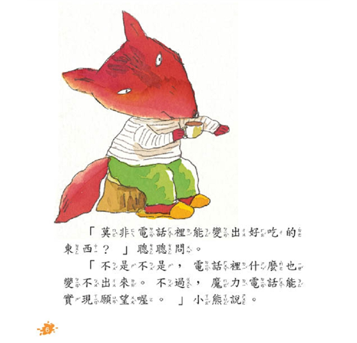 「不是不是,電話裡什麼也變不出來。不過,魔力電話能實現願望喔。」小熊說。
