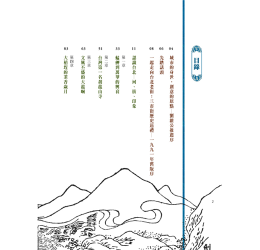 本書重新編排,同時也突出了莊永明老師在本書中對於「台北」的定義為,以艋舺、大稻埕與城內為主的範疇;從三市街開始,便是台北身世的起源,也是莊永明老師在本書中特別彰顯的所在。