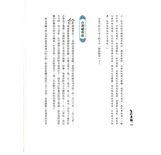 「民政長官」後藤新平,對台灣人素有「研究」,他曾說:「台灣人怕死,要用高壓手段威嚇;台灣人愛錢,可以用小利誘惑;台灣人重面子,可以用虛名籠絡。」他對「台北都會」的看法,也胸有成竹,因為他認為:「台灣人是屬於物質的人種,黃金和儀禮、華廈和宏園,是他們所尊重的對象,唐詩有句:「『不睹皇居壯,安知天子尊。』欲統治此類人種,宏偉的官衙,亦有收服民心之便。」難怪殖民時期的建築物以「壯」、「尊」見長。