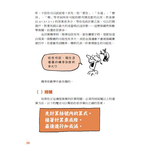 大多數的人,在書架上一看到「數學」,多半就跳過它。而本書作者深入淺出地將各種數學知識以非常自然、巧妙且幽默的串連方式,呈現在讀者面前,讀起它來,沒有負擔,不用擔心自己的數學好不好,因為它真的太有趣了!它時而充滿懸疑、時而穿越古今、時而讓你動動腦筋、時而讓你玩玩遊戲、時而讓你哈哈一笑,就這樣,讓你瞭解了「喔!原來一天、一年是怎麼命名的?」、「喔!原來0這麼有威力?」、「喔!原來計算機也不是萬能的?」、「喔!…?」等,一連串會心一笑的「啊哈!」等著你來發覺!