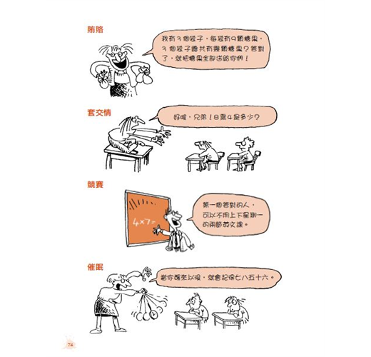 這套書適合三年級以上的孩子們閱讀,不需要受到教材的限制,故事的情境能夠充份配合孩子們的生活經驗。讀到已經學過的段落,可以當成教材的延伸學習;學校沒有教的知識,就當成最佳的補充教材;遇到小學還沒教的內容(例如:等差、等比數列)時,也不要緊張,跟隨著故事情境閱讀,你會發現:其實並不難,原來你也可以輕鬆學會國中數學。