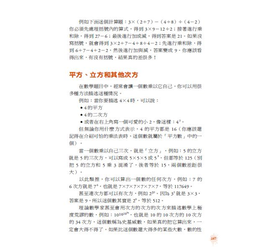 不管你未來想當科學家、藝術家、偶像歌手還是總統,你都需要學會加減乘除!本書將帶你從最基礎的計數開始,學習加法、減法、乘法和長除法的基本概念,破解常見的數學符號,瞭解零的發明有多重要,如何對付複雜嚇人的大數目,還要教你快速運算的機密訣竅……讓你成為算術魔法大師!