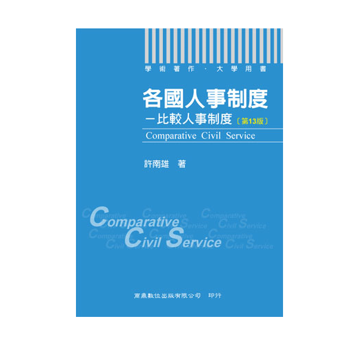 本書增訂13版,全書共19章。書中「國家別」部分僅7章,其餘除首章緒論外,皆屬「制度別」11章,書名雖仍稱為各國人事制度,但實已偏向「比較人事制度」。