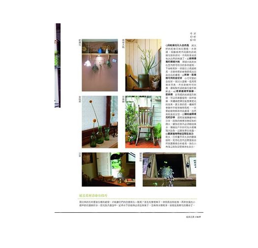 11+3幸福暖暖主人把雜貨舖與住家合而為一,在這裡築起她的夢幻日雜透天小宅;茉莉花園Jasmine希望有一方天地累積些屬於自己的東西,而意外覓得迷人的老房子;黑兔兔把南法的記憶移植到基隆廟口旁的的小小咖啡館……手感有溫度,是他們有著共同的堅持。從黑兔兔、11+3幸福暖暖、旅人之森、小花花手作雜貨店、茉莉花園到小茶匙……,在書中分享的19個精采空間,它們是來自台灣人氣木工老師、雜貨作家、花藝工作者、手作達人、自然風店家巧思經營的空間。藉由他們的分享,徹底帶領我們從「空間動線」、「色調決定」、「素材選用」、「裝修手法」、「雜貨陳列」、「家具配置」、「佈置技巧」、「收納訣竅」、「植栽花藝」,step by step,逐步完成清明亮的好感住宅。透過他們的分享,更能習得他們手作、採買、挖寶的私管道與私秘訣。跟著他們從小角落著手,讓家變得更美、更有生命力。