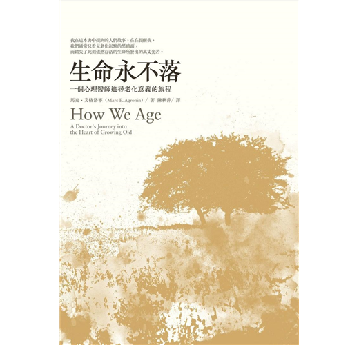 很高興二○ 一一年二月出版的《How we age: a doctor's journal into the heart of growing old》一書,現在已有中文版《生命永不落:一個心理醫師追尋老化意義的旅程》問世。此書的作者馬克‧ 艾格洛寧是資深的美國老年精神專科醫師,在「邁阿密猶太健康系統」的安養中心行醫,其病人平均年齡將近一百歲,最年輕的病人是六十二歲。他把十四年來照護老年人的臨床經驗、老年醫學知識和所悟出人生哲理融會貫通,並以不同病人的生命故事來貫穿全書,讓讀者跟著作者,由老化的觀點、巡訪老年、記憶褪色、智慧圓融,最後走到生命的邊境。