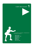 Level 2 雙腿大幅張開,屈膝半蹲再起身 94 單腳承受身體重量,屈膝半蹲再起身 95 前後屈膝蹲下再抬高膝蓋 96 站立往前踢腿 97 雙腳輪流往側面跨步 98 往側面抬腳 99 趴下撐起身體,往後屈膝 100
