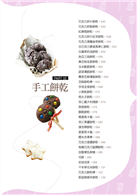 巧克力碎片餅乾、白巧克力夏威夷果仁餅乾、白蓮草奶油餅乾、蔬菜薄脆餅乾、字母全麥餅乾、杏仁義大利烤餅、椰香馬卡龍、糯米吉拿棒……