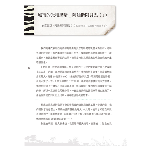 長期旅行的旅遊家 × 平凡女大學生的105天非洲遊記。