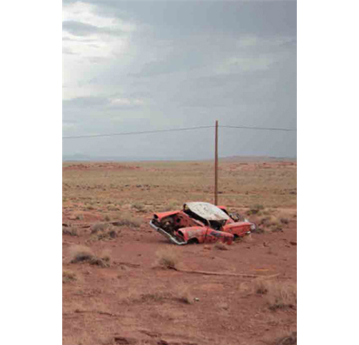 一輛一九二九年出廠的哈德遜牌貨車,分辨不出是原本塗裝成淺咖啡色,還是車身均勻佈滿斑駁的鐵鏽痕。雖然行駛在一望無際的平坦沙漠地帶,引擎聲聽來卻像是過勞的工人:使不上力、氣喘吁吁。原因顯而易見,小小的車身上頭堆滿了雜物:木桶、工具箱、雞籠、平底鍋、水壺、洗衣盆、床墊、毛毯,上頭用一塊稍嫌小的防水布將這些物品和車身緊緊捆住。超載的物品讓四條過度磨損的輪胎在爆裂的臨界點徘徊,可以想見,這裡離他們的出發點已經有好一段距離,過程想必是顛沛曲折。車身呈現出一種隨時有可能傾倒的危險平衡,從我眼前經過。