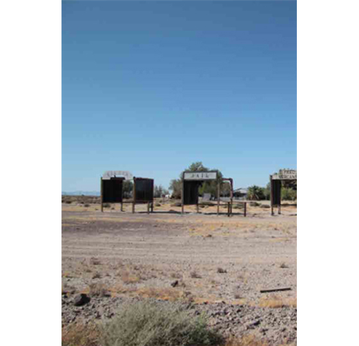 再度遇上一列超越兩公里的貨運列車,在彼此像是嬉戲中的獵犬相互追逐下,來到了Amboy。Roy's Cafe就像高熱柏油路上出現水灘的海市蜃樓,留有五○年代流線風格的碩大招牌,孤獨地站在這廢棄的小鎮。