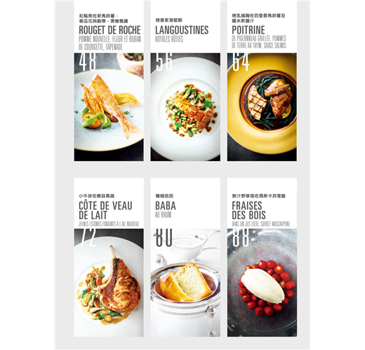 附上食材索引,可從食材尋找食譜的概念。所有讀者都可以在家嘗試製作大師們的配方,收藏您最喜愛的名廚著作!
