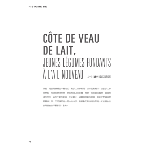 還有還有!不單單是收錄代表作品,並且附上基礎配方和食譜,亞朗•杜卡斯將跟大家一起做各式高湯和醬汁;皮耶•艾曼親自教大家做蛋白霜、各種奶油醬和派皮,我們都可以邊看書邊在家裡操作,遙遠的巴黎美食近在眼前,都是家裡餐桌的幸福滋味。