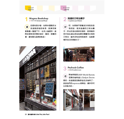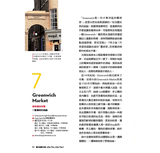 逛市集挖寶需要門路,本書除了提供瞭解各大小市集的獨具特色之外,還要帶你走入許多錯過了會飲恨一輩子的精選店家,告訴你逛-市集絕對不能空手而回的必買好物,當然,這裡也有道地英國小吃及各國美食佳餚任君挑選。
