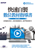 本書以實際製作數位教材經驗的角度說明快速自製數位教材的發展方式與應用,介紹快速自製數位教材的觀念與技巧。避免描述太多數位學習的規則與理論,只專注在與快速自製數位教材有關的先備基礎概念與實務發展原則,說明各單位要如何發展自製數位教材,最後再以實際案例示範如何利用坊間的自製教材工具來完成數位教材。為了讓讀者更能吸收本書所提到的觀念與案例,書中內容多以表格或圖解方式呈現協助理解與記憶,再以重點掌握或提醒方式加強說明。