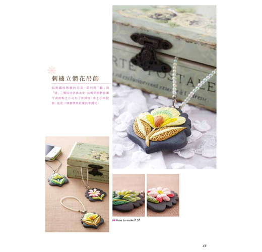 異素材的結合,讓輕黏土有了不同的風貌,看是要名牌味十足的包包吊飾,還是充滿巴洛克風格的飾品。若這些還不能滿足的話,那具有未來性的希望之樹或是迷幻味十足的聖誕紅,都能讓妳驚艷全場。