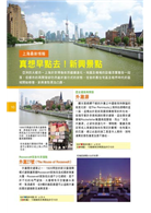 最火紅的黃浦江「外灘3號」「外灘18號」,新天地的流行時尚,洋樓、現代建築爭豔的城市風貌,讓女性滿足的SPA美容院、繡花鞋,採購工藝品、民藝品,各種中國地方菜的名店林立,從高格調的餐廳到街角小吃,大閘蟹、小湯包…,資訊齊全,不論是美食家派、購物派、旅遊派,全面滿足您的興趣。
