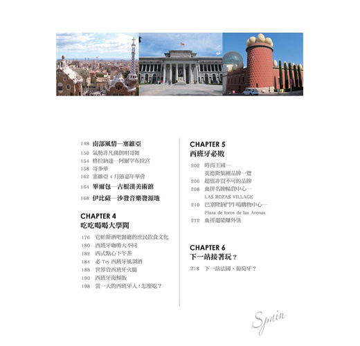 ◎年度盛事旅遊參考:書末特別將西班牙的年度盛事整合成列表,結合了相關的觀光建議、旅行叮嚀、旅費曲線與氣溫等資訊。
