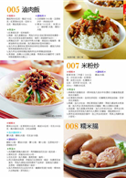 控肉飯、豬腳飯、南部滷肉飯、手切滷肉飯、香菇滷肉飯、香椿滷肉飯、豬油拌飯、紅糟肉燥飯、素瓜仔肉燥飯、雞肉飯、香滷鴨肉飯、高麗菜飯、麻油雞飯、香蒜吻仔魚飯、螺肉香菇飯、牛蒡香菇飯、芋頭油酥飯、地瓜飯、黃豆糙米飯、火腿蛋炒飯、鹹魚雞粒炒飯、青椒牛肉炒飯、酥炸雞腿飯、羅漢齋燴飯、中式經典飯糰、甜味飯糰、油飯、台式鹹粥、皮蛋瘦肉粥、虱目魚粥、豬肝粥、吻仔魚粥、蚵仔粥、紫米粥、北部粽、南部粽、粿仔粽、鹹米苔目、台式炒米粉、金瓜炒米粉、家常香芋米粉、旗魚米粉湯、米粉湯、客家鹹湯圓、客家乾粄條、客家粄條湯、油蔥酥粿仔條湯、米苔目湯、乾拌米苔目、豬腸冬粉、陽春麵、切仔麵、擔仔麵、榨菜肉絲麵、台式海鮮湯麵、蚵仔麵、菜肉餛飩麵、原味清湯蚌麵、大滷麵、台中大麵羹、魷魚羹麵、土魠魚羹麵、大麵炒、紅蔥肉燥炒麵、蔥油意麵、家常炒麵、海鮮炒麵、沙茶羊肉炒麵、台南鱔魚意麵、木須炒麵、傳統涼麵、豬腳麵線、麻油雞麵線、當歸鴨麵線、苦茶油麵線、絲瓜麵線、紅燒牛肉麵、清燉牛肉麵、番茄牛肉麵、麻辣牛肉麵