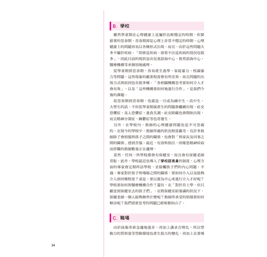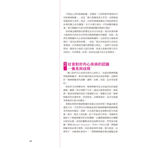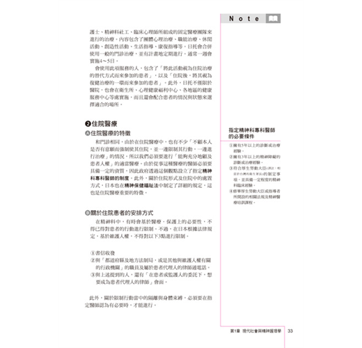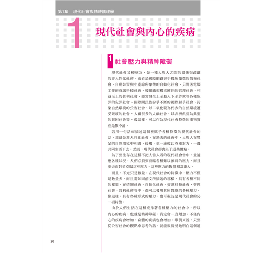 本書由多位日本精神科醫生與教授聯合執筆,從內心的構造與功能、現代社會環境與心理健康的關係,到各種精神疾病的護理原則,均有全方位的解說。書中編排簡潔明瞭,方便醫學相關科系的學生與人員進修、學習。並收錄豐富的臨床案例,搭配實例進行解說,讓讀者得以瞭解護理的第一線情形。
