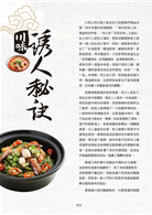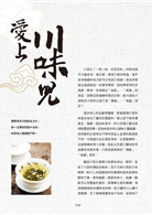 共120道的特色菜有家常風情、經典傳統、新派創新等各類型菜品與烹煮技巧,每道菜都有美味秘訣大公開,以及味型、味道、特色、典故、文化、風情等深入淺出的文字介紹,讓您透過對照、比較了解其料理與調味的技巧與異同,讓人人都能觸類旁通,嘗到川味兒的精隨。