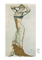 里昂.巴克斯特(Leon Bakst),著名俄國藝術家,創作橫跨戲劇、插畫、服裝設計等多個領域。他於1866年出生於白俄羅斯的格羅德諾,十七歲進入聖彼得堡藝術學院就讀。二十二歲開始從事兒童繪本插畫工作。二十四歲時認識畫家貝努瓦(Albert Benois),開始學習水彩畫。二十七歲到巴黎旅行,習作在巴黎展出,受到《費加洛》雜誌青睞,曾入法國學院派名師傑洛姆畫室上課,並入朱里安藝術學院。1898年為《藝術世界》雜誌作插畫,並任設計總監。1907年與編舞家弗金恩合作,設計聖彼得堡慈善舞會服裝,後來為魯賓斯坦設計《莎樂美》服裝,並為戴亞吉列夫籌措首齣在巴黎上演的俄國芭蕾舞劇,擔任首席服裝及舞台設計師。其後設計多齣舞劇的服裝,並舉行多次個展。1918年至1922年設計《幻想精品屋》、《阿拉丁神燈》、《睡美人》等舞台服裝。1923年受邀到美國設計舞台服裝,並舉辦個展。1924年十二月因病過世,葬於巴黎墓園,巴克斯特回顧展也隨之在巴黎及聖彼得堡舉辦。