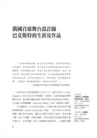 本書為巴克斯特的生涯與作品介紹,以各時期的生平與時代描述,輔以當時期的代表作品圖版,以為這位對俄國藝術在西歐的推廣貢獻卓著而角色多樣的藝術家,進行其生涯與美學發展的詳盡追溯。