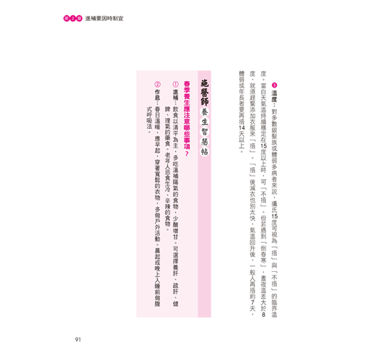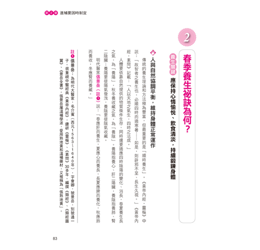 ◎春天:以溫補為主,早睡早起,適合戶外活動。