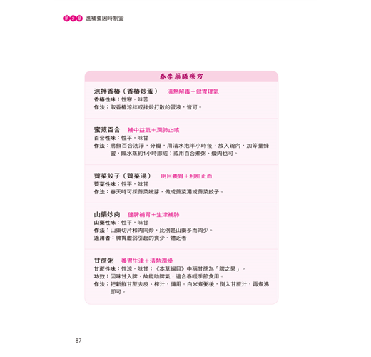 哪裡虛就補,針對不同證候,提供常見食材、中藥和食譜,作法簡明易懂,每道料理具有保健功效,是對證施補的最佳指南。
