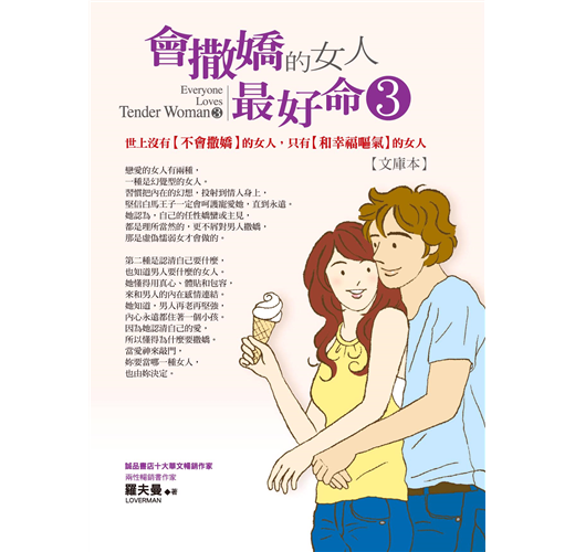 其實,男人的心中,永遠都住著一個長不大的男孩,渴望被心愛的女人撫慰,他才有力量扛得起重責大任;而每位陷入愛河裡的女人,也都具備「撒嬌」天性,不用老師教,更不用考證照,當妳遇見讓妳有感覺的真命天子,妳自然會想對他貼心呵護。但是,有太多女人誤解撒嬌的真意,而讓幸福與自己擦身而過。真正聰明的好命女,清楚自己要什麼、想擁有一段什麼樣的感情,因此,她懂得把撒嬌認真地用在刀口上,了解男人的需求,適時施展撒嬌功力,支持對方,幸福自然而然降臨。