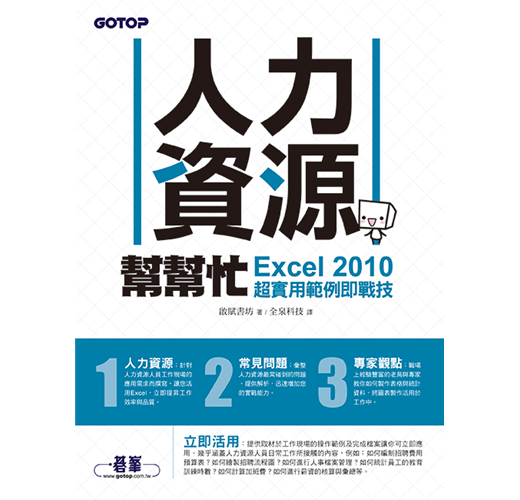 實用——全書以提高人力資源人員的工作效率為目標設計章節,範例是以人力資源人員最常接觸的工作來設計,是人力資源的首選書籍。