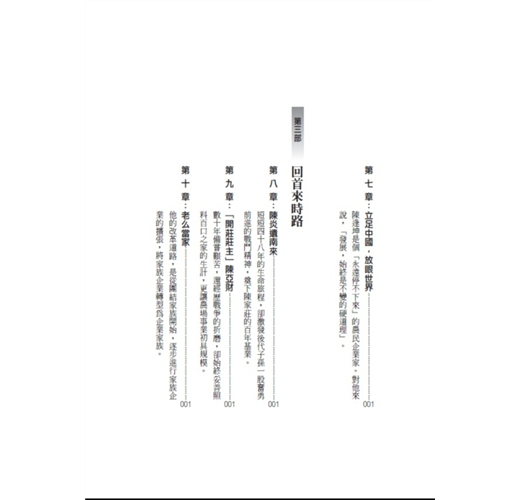 第三、陳家莊的事業於一九九三年擴展到中國大陸,至今二十二年,期間遭遇亞洲金融危機的衝擊與企業領導人健康危機等種種打擊,走出重重困難的陳家莊,如今找到永續發展的方向與辦法。