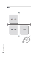 因此,本書作為圖解的入門篇,將焦點置於在什麼樣的場面,該使用什麼樣的圖表之上。本書既不要求將圖表畫得很漂亮,也不要求開發出令人耳目一新的圖表。真正重視的是,要經常提醒自己,平時在各種場面所見到的圖表,一旦自己拿來使用時,該如何做比較好。