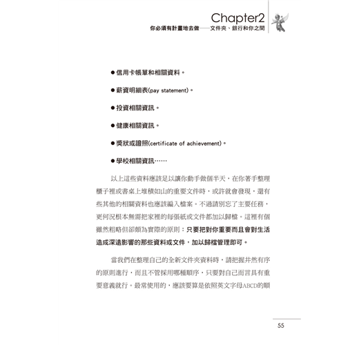 2.你必須有計畫、有組織地去善用文件夾處理帳單、銀行和你之間的種種資料。