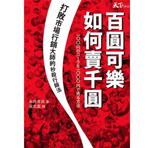 天下雜誌日本館出版的「百圓可樂如何賣千圓」,作者永井孝尚以故事性的手法,舉了大量的例子來說明如何不受客戶擺佈,而是針對顧客的課題,徹底思考自家公司才能提供的價值,並透過市場區隔來進行市場行銷與定位,以在激烈的市場競爭中脫穎而出的方法,想在低迷的環境中走出一條自己成功道路的讀者,絕對值得一讀!