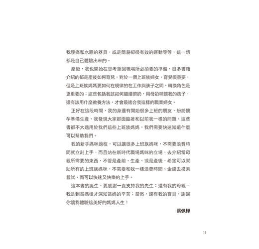 正好在這段時間,蔡佩樺身邊有開始很多上班的朋友,紛紛懷孕準備生產,發現大家都面臨著一樣的問題,這些書都不大試用於這些上班族媽媽,她們需要快速知道,什麼是可以真正在這個時代,幫助職場新手媽咪的。
