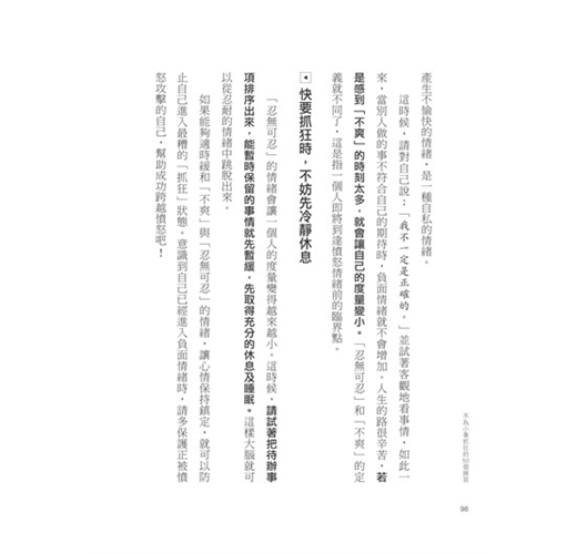 ◎亂發火不可恥,記得「事後反省」就好。──記取憤怒的經驗,能幫助提醒自己「別亂生氣」。