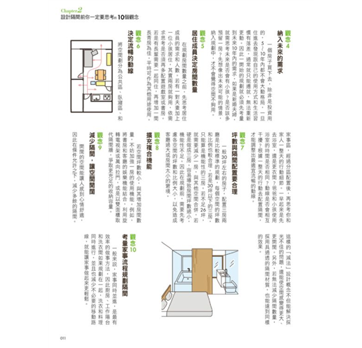 有了基本的設計知識之後,本書並依隔間形式提供大量的隔間設計圖鑑賞析,除了欣賞外觀的造型美之外,每個隔間都會附上使用者需求、材質和價格,將隔間好看又好用的關鍵細節透明化,不論是正在裝修、想局部改造隔間或是為家中隔間煩惱的人,本書都能為你提供最完整詳實的設計知識。