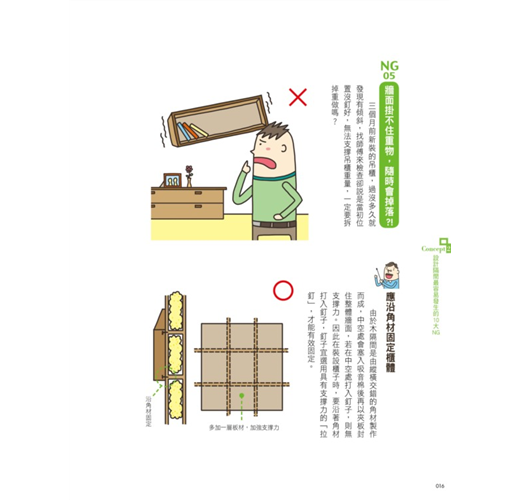 NG 5 牆面掛不住重物,隨時會掉落?!