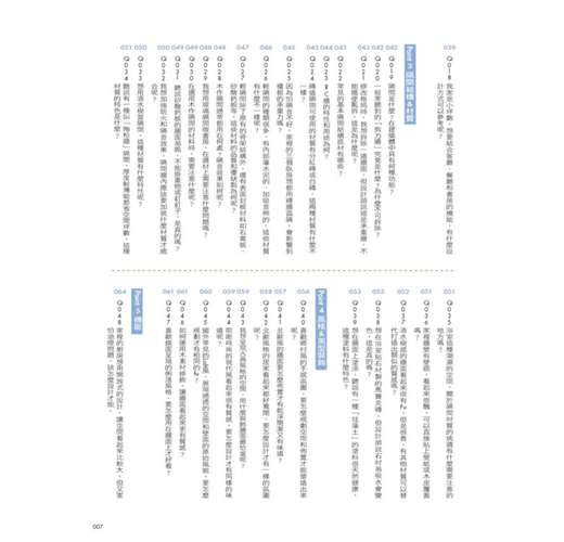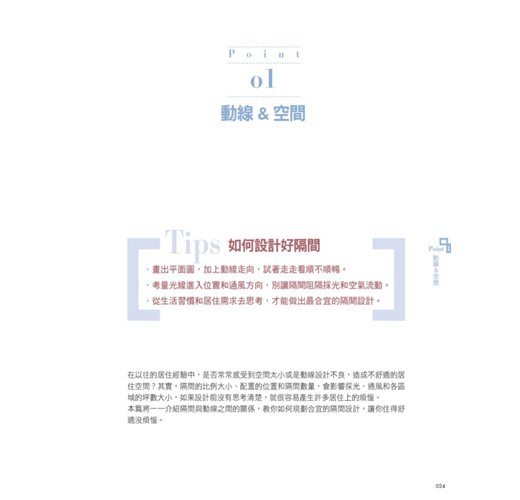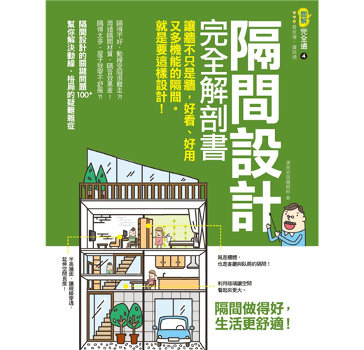 本書從裝修者最感困惑的問題下手,收錄130個使用隔間常見的疑問,細說關於隔間設計的各項細節,例如:該怎麼隔才能有好動線?用什麼材質質感佳又能阻隔噪音?怎麼隔才能符合家人的生活習慣?鉅細靡遺地解決你對隔間設計的疑惑。