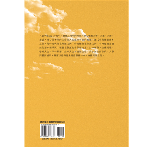《雲水依依》詩集中,蕭蕭以兩年的時間,靜心觀察茶樹、茶葉、茶湯、茶香,潛心思考茶的生命與人的生命可能的匯通。繼《草葉隨意書》之後,他時而伏行在葉脈之內,時而蜷縮在茶葉之間,有時還投身滾熱的茶水裡浮沉,埋首在氤氳的香氛裡淡定。以一杯茶,含藏天地,暗喻人生;以一杯茶,品味人生,證悟生命。雲水無心而依依,人茶同體而娟娟,蕭蕭以這冊詩集見證茶禪一味,詩禪同境之美。